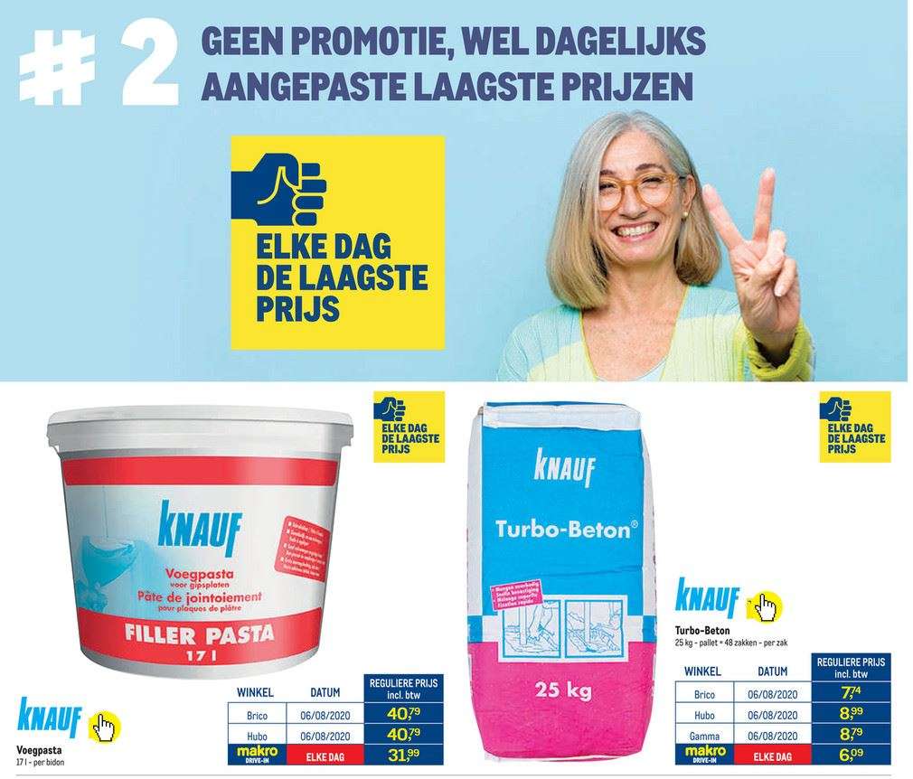 Le nouveau dépliant non food de Makro consacre deux pages au Work Center, le service de bricolage en drive-in du retailer. Pour neuf produits, Makro publie non seulement son propre prix, mais aussi les prix (nettement plus élevés) pratiqués le 6 août par les trois grandes chaînes de bricolage : Brico, Hubo et Gamma. Il ne s’agit pas de promotions, souligne la société de cash&carry, mais de prix bas ajustés chaque jour pour notamment une pâte de jointoiement Knauf, un robinet thermostatique de douche Grohe et des pierres de bordure en béton.