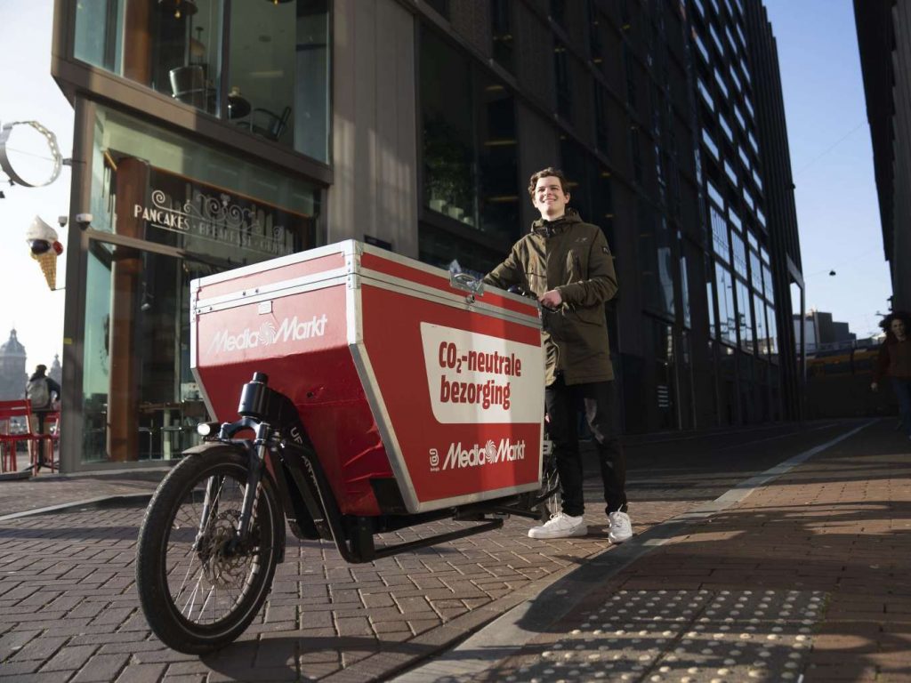 MediaMarkt livrera désormais les commandes en ligne le jour même, en un vélo cargo ou voiture électrique, depuis des magasins, dark stores et grands centres de distribution. La coopération avec la plateforme de livraison durable Bringly a déjà commencé dans les 49 magasins néerlandais ; elle devrait être étendue aux 24 établissements belges dans le courant de l’année.