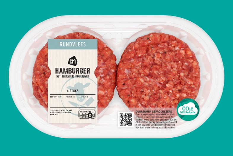 Ce n’est qu’une des mesures prises par Albert Heijn pour réduire les émissions de 45 % d’ici 2030 par rapport à 2018, et parvenir à des émissions nettes nulles d’ici 2050. Une autre initiative notable est l’introduction de variantes de hachis à plus faibles émissions : le détaillant lance un hachis bœuf-poulet et un hamburger bœuf-poulet. Ces produits ont des émissions par kilogramme inférieures de 37 % à celles des variantes au bœuf et sont également moins chers.
