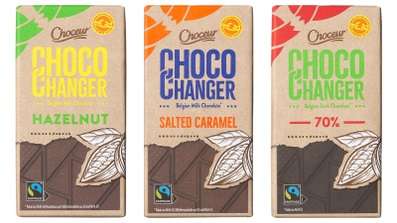 Aldi Belgique élargit sa gamme de chocolat durable avec le Choceur Choco Changer, une gamme de barres de chocolat 100% durable et équitable avec des fèves de cacao traçables, disponibles en trois saveurs : lait-noisette, lait-caramel salé et noir 70%.