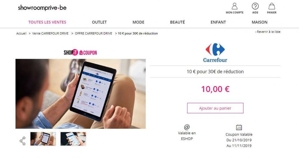 Showroomprive propose des coupons de réduction valables chez Carrefour : pour 10 euros les e-shopppers peuvent se procurer un bon d’une valeur de 30 euros. C’est la première action commune entre Showroomprive et Carrefour, actionnaire de la plateforme de ventes événementielles.