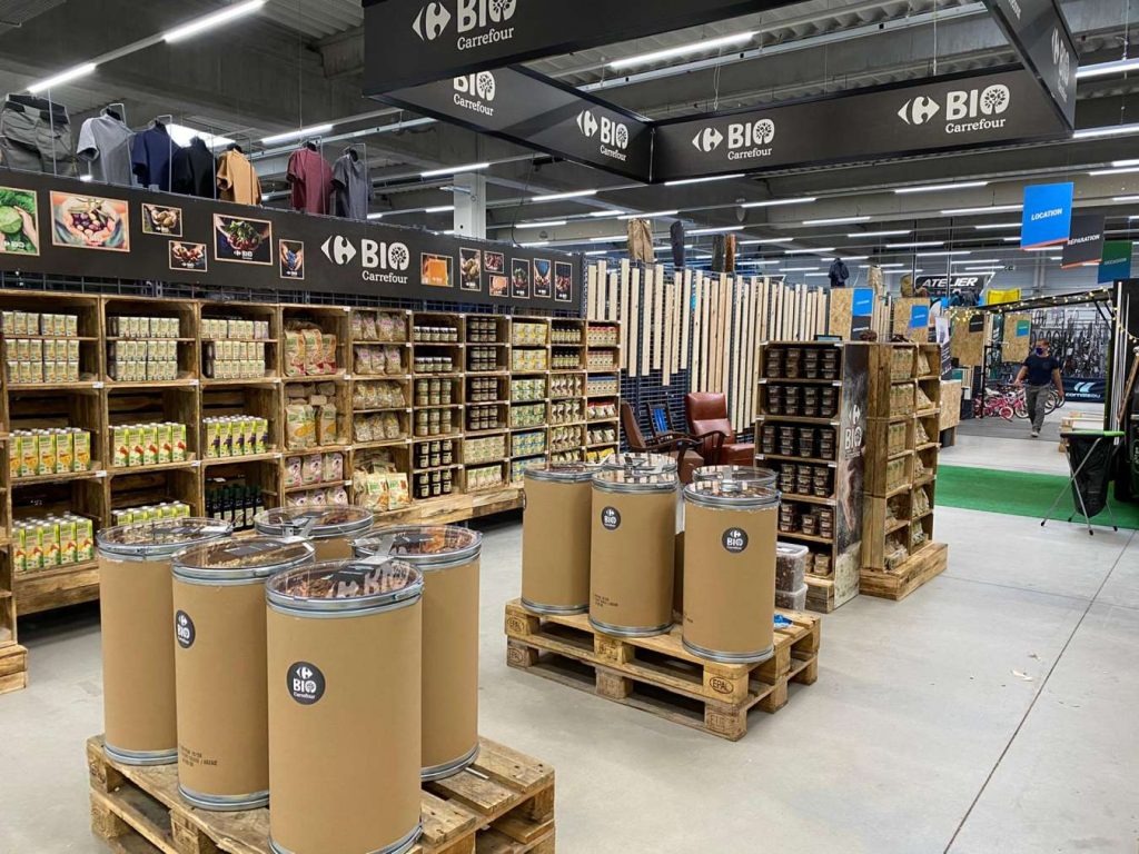 Un coin bio a été aménagé dans le magasin Namur, avec une centaine de références de la gamme Carrefour BIO sur une surface de 25 m². Dix produits sont également disponibles en vrac.