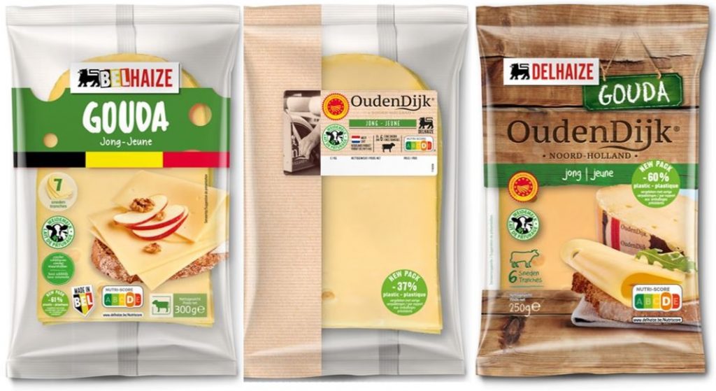 Delhaize franchit une nouvelle étape dans son plan de développement durable » The Lion’s Footprint » en modifiant l’emballage de sa gamme de fromages sous marque de distributeur. La chaîne de supermarchés indique qu’elle utilisera bientôt 86 tonnes de plastique en moins par an pour l’emballage de trois gammes de fromages sous la marque Delhaize : Oudendijk, les spécialités fromagères fraîchement emballées et, à partir de juin, le gouda belge.