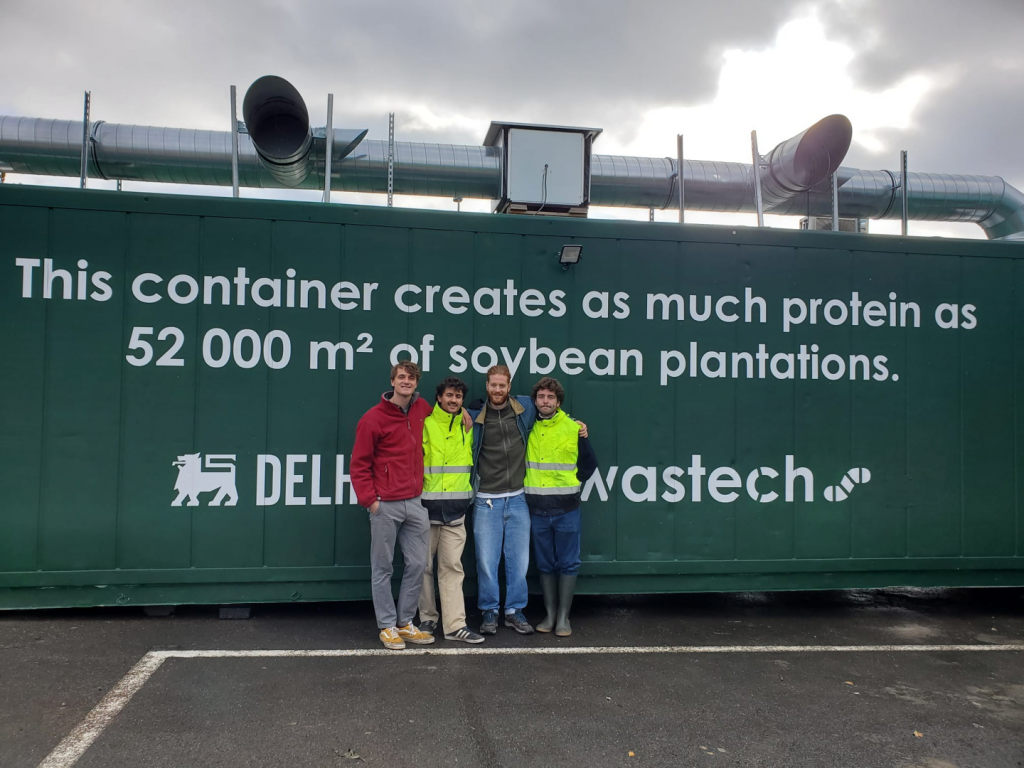 La start-up Wastech considère les larves comme une alternative parfaite au soja largement utilisé, qui laisse souvent une empreinte écologique importante. « Notre objectif est de traiter 20 tonnes d’excédents alimentaires par mois et d’en tirer 3 tonnes de larves et donc de protéines. L’efficacité de notre système de culture nous permet de produire autant de protéines qu’une plantation de soja de 10 terrains de football, » explique Victor Poncelet de Wastech. Les larves sont donc aussi un moyen de réduire les émissions de CO2 des supermarchés.