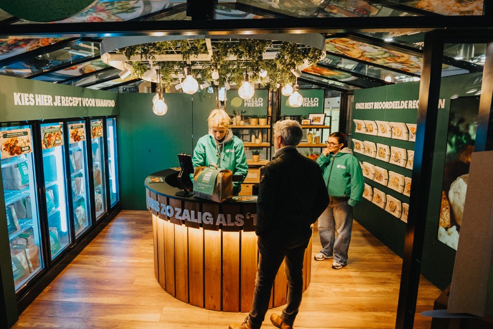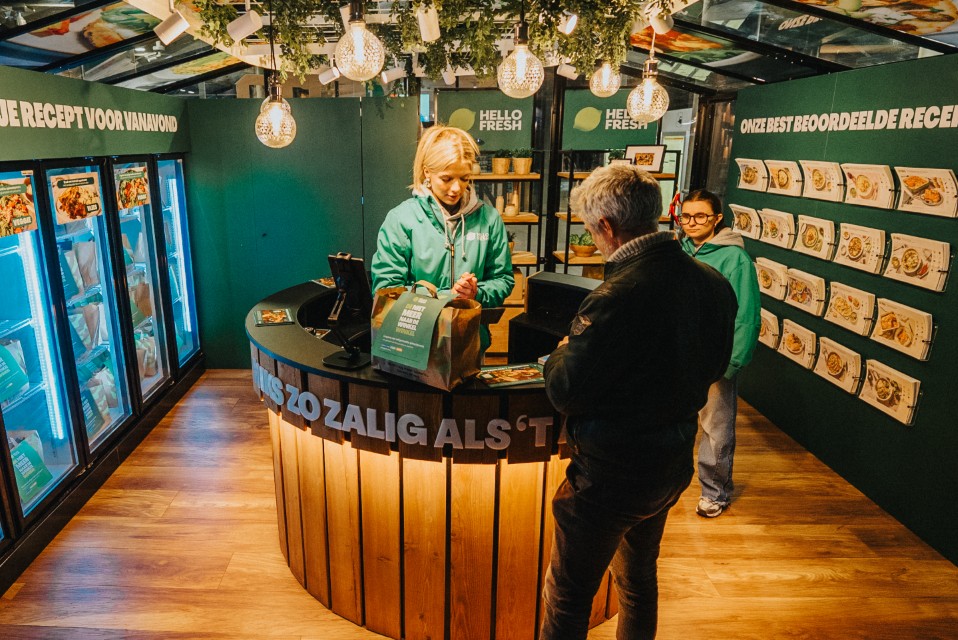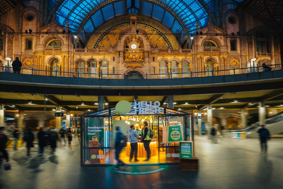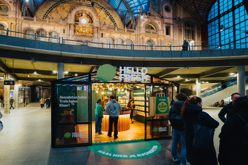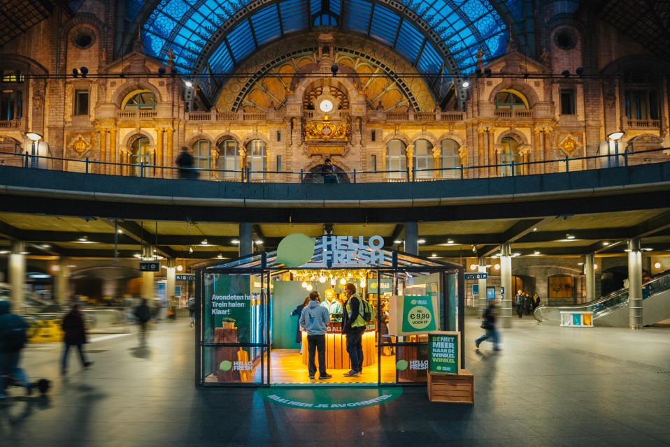 À la gare centrale d’Anvers, HelloFresh a ouvert « le magasin plus besoin d’aller au magasin », où les navetteurs peuvent acheter un kit repas complet à préparer chez eux. Plus tard, ce pop-up s’installera à Utrecht.