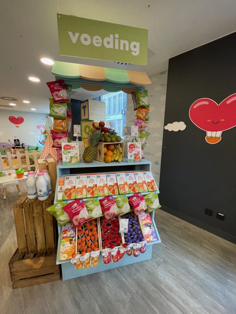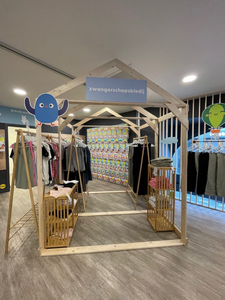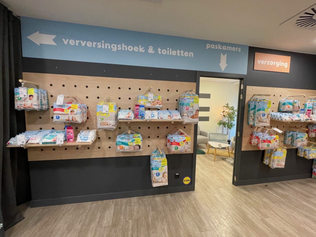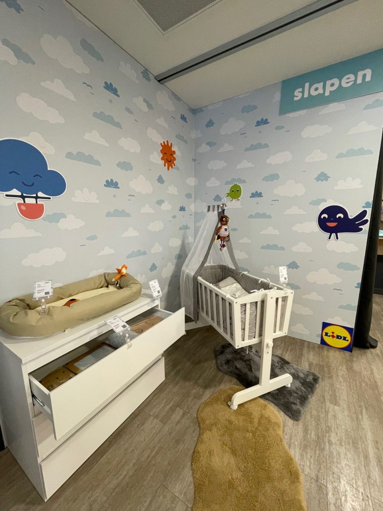 Les acheteurs y trouveront pas moins de 1 800 références, allant des produits alimentaires aux produits de soins et aux couches, en passant par les vêtements, les accessoires et les jouets. La plupart de ces articles sont vendus exclusivement en ligne par Lidl. Ici, le détaillant présente également la catégorie hors ligne : la gamme bénéficie de beaucoup d’espace dans un environnement commercial attrayant et inspirant sur deux étages, l’accent étant mis sur les vêtements, les jouets et l’alimentation au rez-de-chaussée et sur les accessoires et les chambres d’enfants au premier étage. Il y a également un coin jeux, des cabines d’essayage et une salle de soins au rez-de-chaussée.