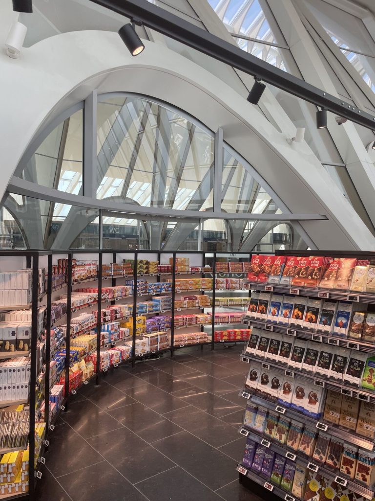 Quelque dix-huit mois après l’ouverture d’un premier supermarché Monoprix dans le centre de Waterloo, la formule compacte de convenience Monop’ a également fait ses débuts en Belgique. Le nouveau magasin, ouvert depuis le 4 juillet, est situé dans la gare de Mons au look futuriste, conçue par l’architecte espagnol Santiago Calatrava. Le design de la boutique s’intègre parfaitement dans l’environnement lumineux de la gare, avec ses hauts plafonds voûtés.
