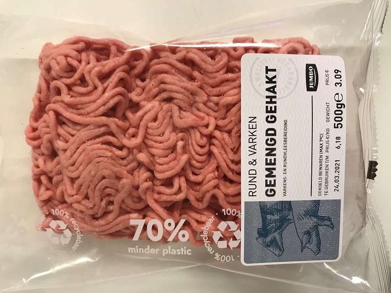 La chaîne de supermarchés Jumbo change ses emballages pour réduire l’utilisation de plastique. Le principal changement : la viande hachée conditionnée dans des sachets en plastique. Cette initiative devrait permettre d’économiser des centaines de milliers de kilos de plastique par an.