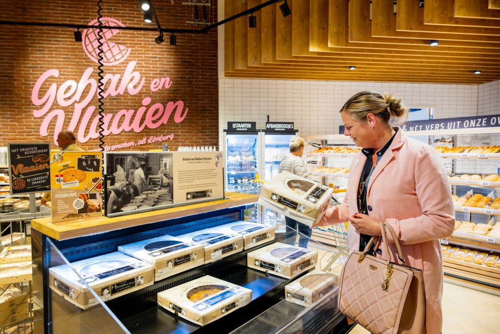 Le nouveau Jumbo Foodmarkt est situé dans le village d’Echt, au nord de Maastricht, dans une partie étroite des Pays-Bas, coincée entre la Belgique et l’Allemagne. Il n’est donc pas étonnant que ce supermarché, le premier de la province du Limbourg, souhaite également attirer des clients d’au-delà des frontières du pays.