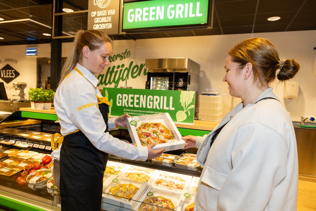 Le magasin spacieux à l’ambiance chaleureuse déballe des concepts frais tels que le Green Grill avec des préparations de légumes ou un rayon traiteur, qui ont été adaptés pour convenir aux petites succursales Foodmarkt ainsi qu’aux supermarchés Jumbo de plus grande taille. Les clients trouveront également des pinsas et des focaccias fraîchement sortis du four, ainsi que de nouveaux produits prêts à l’emploi, comme par exemple des sandwichs aux boulettes de viande fraîches. Les offres sont affichées sur des écrans numériques afin d’offrir aux clients une expérience d’achat moderne et dynamique.