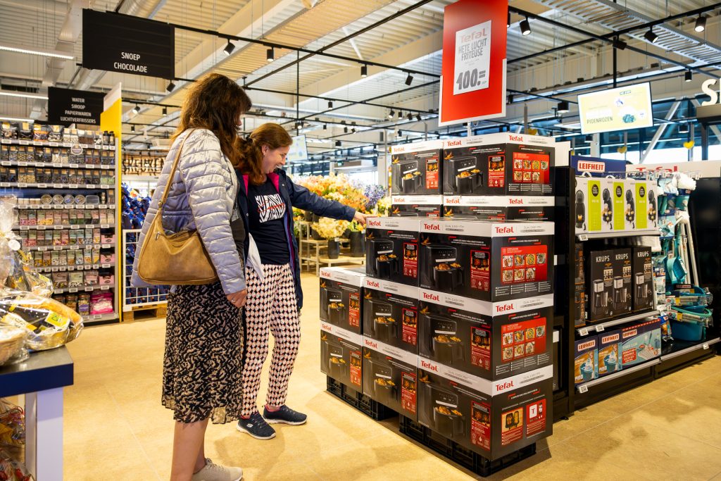 Ainsi, outre les produits locaux du Limbourg tels que les asperges, les flans, les glaces, les vins et les bières spéciales, les clients trouveront également dans ce magasin des marques de café allemandes et des spécialités belges telles que les sauces D&L, le ragoût Coertjens et les éclairs. En outre, pour la première fois, Jumbo y vend également des appareils électroménagers, tels qu’un airfryer et une machine Dolce Gusto. L’objectif est de proposer tous les quinze jours une offre non alimentaire aux prix les plus bas. Ce test correspond à l’ambition de l’enseigne de proposer l’offre la plus complète.