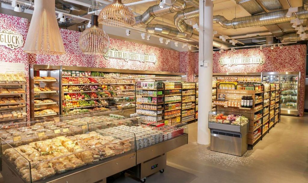 Les clients y trouveront entre autres un rayon de produits en vrac, un bar à café et à thé avec des places assises, des ‘breakfast bowls’ faits maison, des smoothies, des salades, des sandwichs et des hotdogs végans. En collaboration avec le site web de recettes Fooby, le magasin propose une recette végétarienne par semaine, dont les ingrédients sont présentés sur une tête de gondole.