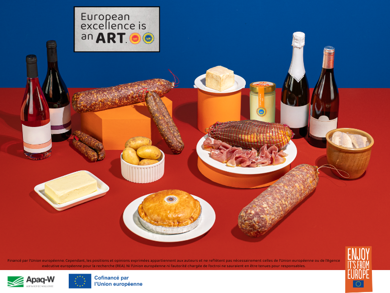 C’est sous le slogan « Eurofoodart, l’excellence européenne est un art » que l’Apaq-W, l’Agence wallonne pour la Promotion de l’Agriculture de Qualité, participe pour la deuxième fois à une campagne cofinancée par l’Union européenne. Le but de cette dernière ? Promouvoir les produits bénéficiant des prestigieux labels de qualité AOP et IGP.