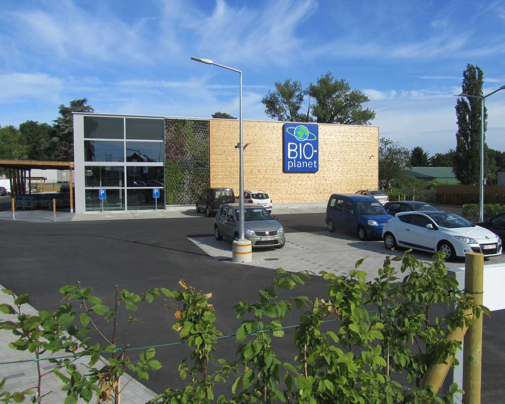 Tout comme dans d’autres magasins de Bio-Planet, le retailer a eu recours à des techniques durables : ainsi le bâtiment est parfaitement isolé, hermétique et économe en énergie. L’installation de réfrigération écologique au propane a une durée de vie plus longue et émet moins de gaz à effet de serre que les installations traditionnelles. Les façades vertes de 100 m² – les plus grandes façades vertes de Bio-Planet – permettent de purifier l’air et d’augmenter la biodiversité. Des bornes de recharge pour vélos et voitures électriques ont été installées sur le parking.