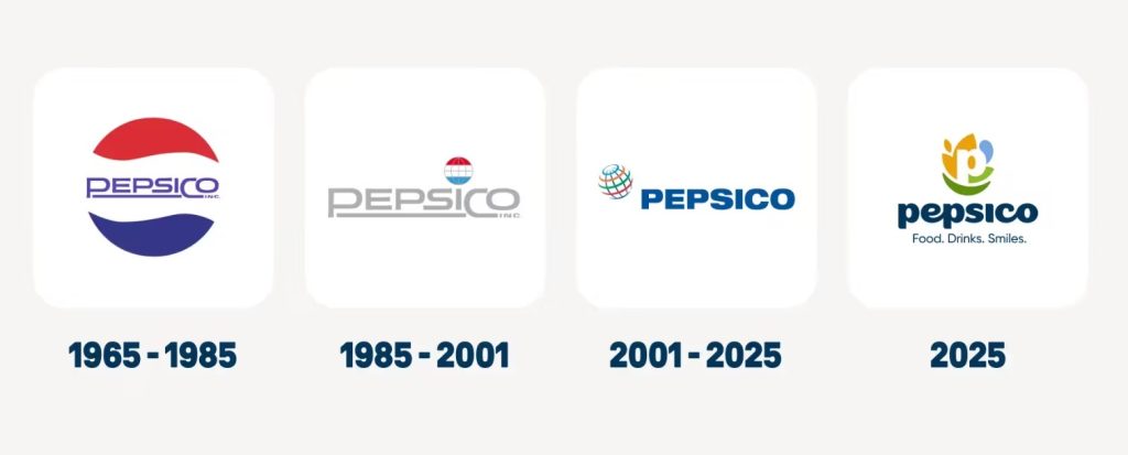 La lettre P est au cœur du nouveau logo. En utilisant des lettres minuscules, PepsiCo souhaite donner une impression d’accessibilité. Le sourire correspond à la mission de créer plus de sourires à chaque gorgée et chaque bouchée, exprimée en trois mots : « Food. Drinks. Smiles. » La nouvelle marque prendra vie de différentes manières, à commencer par une refonte de PepsiCo.com et des réseaux sociaux mondiaux : LinkedIn, Instagram, YouTube et TikTok. Elle sera progressivement introduite sur tous les marchés, canaux et points de contact – des emballages alimentaires et de boissons aux lieux de travail et à la signalisation – afin de relier la vaste famille de marques grand public à la marque de l’entreprise.
