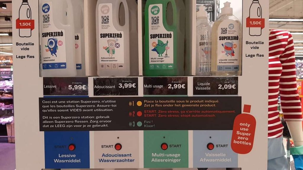 Cette initiative découle de la « Mission zéro déchet », dans le cadre de laquelle Carrefour a recueilli 129 propositions à mettre en œuvre. La proposition relative à l’installation de distributeurs de produits d’entretien en vrac a suscité beaucoup d’enthousiasme et est maintenant concrétisée en magasin. Grâce à un partenariat avec le distributeur Superzero, les clients pourront désormais se ravitailler en produits d’entretien de façon durable en utilisant des bouteilles réutilisables. L’installation des distributeurs est prévue dans le courant des mois de mai et juin dans cinq magasins Carrefour.