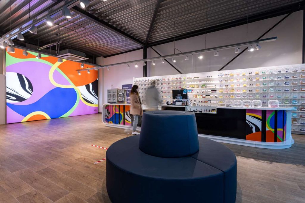« Nous choisissons toujours des emplacements de choix avec un fort passage », explique Ruud van Eckeren, copropriétaire. « Nous sommes présents dans les centres commerciaux de Wijnegem et Waasland, dans la Stadsfeestzaal sur le Meir à Anvers et depuis peu également sur la place de la Monnaie de Bruxelles. Les produits de vapotage sont en effet soumis aux lois sur le tabac. »