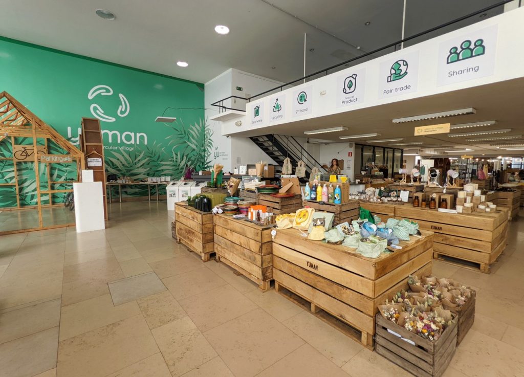 Des entrepreneurs locaux peuvent vendre leurs produits durables au Yuman Village en échange d’une commission. Ils travaillent également dans l’atelier quelques jours par mois, en rotation. L’offre : un large éventail de produits circulaires, de seconde main et « zéro déchet », allant des textiles durables aux emballages réutilisables et aux cosmétiques écologiques en passant par les produits de décoration et de nettoyage. Par exemple, vous trouverez des objets de design fabriqués à partir de matières résiduelles collectées, portant le label « Made with your waste. »