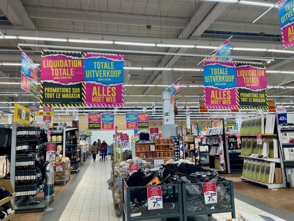 « Promotions sur tout le magasin », « Liquidation totale avant fermeture » : chez Cora à Woluwe, la liquidation bat son plein, tout comme dans les six autres magasins de la chaîne d’hypermarchés qui fermeront leurs portes en janvier. Alors que les clients viennent encore profiter des bonnes affaires, une partie de la surface commerciale est déjà fermée : on y travaille d’arrache-pied pour ouvrir les premiers nouveaux magasins fin janvier – un Delhaize de 2 500 m² et un magasin Kiabi au rez-de-chaussée, des magasins Jysk et Extra Shop au niveau -1.