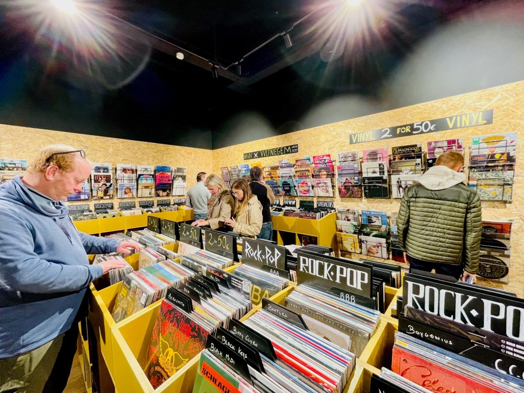 Il y a aussi beaucoup de T-shirts iconiques de rock, mais à en juger par l’intérêt des premiers visiteurs, la chaîne marque surtout des points avec son vaste assortiment de disques vinyles. Deux vinyles pour 50 euros : c’est un prix intéressant. Même si des nouveautés comme Hackney Diamonds des Rolling Stones ou la réédition de la célèbre compilation rouge et bleue des Beatles sont proposées à des prix nettement plus élevés.