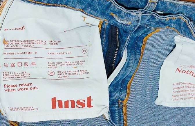 HNST (pour « honnête ») prétend fabriquer les jeans les plus propres du monde. Les pantalons sont fabriqués en tissu composé à 56 % de coton recyclé et le label n’utilise pas de produits chimiques nocifs les colorer. L’année dernière a été celle du baptême du feu commercial pour la marque belge : au cours de sa première année, HNST a vendu environ 5 000 pantalons, rapporte De Tijd.