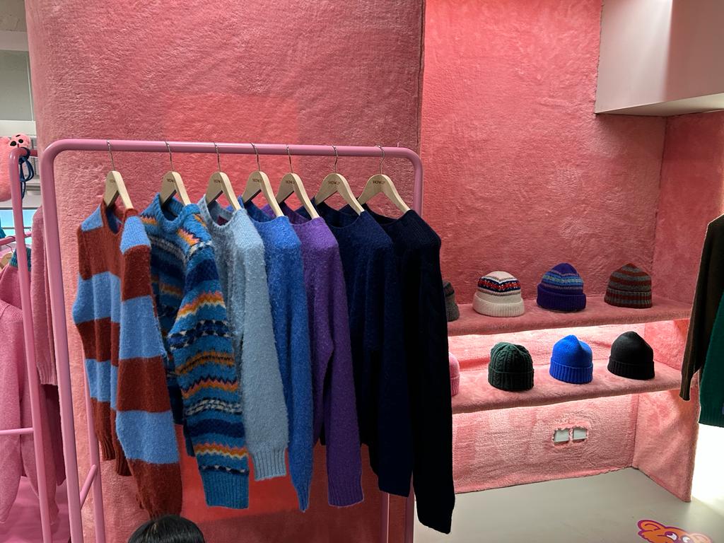 À l’occasion de l’inauguration, Howlin’ a créé la collection « Pinky Pie », disponible exclusivement à Séoul. Les premiers clients recevront ainsi un porte-clés Pinky Pie Shaggy Bear. La boutique pop-up a ouvert ses portes le 12 octobre et restera ouverte pendant six semaines. RetailDetail s’y est rendu à l’occasion des Retailhunts qui se sont déroulés ce mois-ci à Séoul.