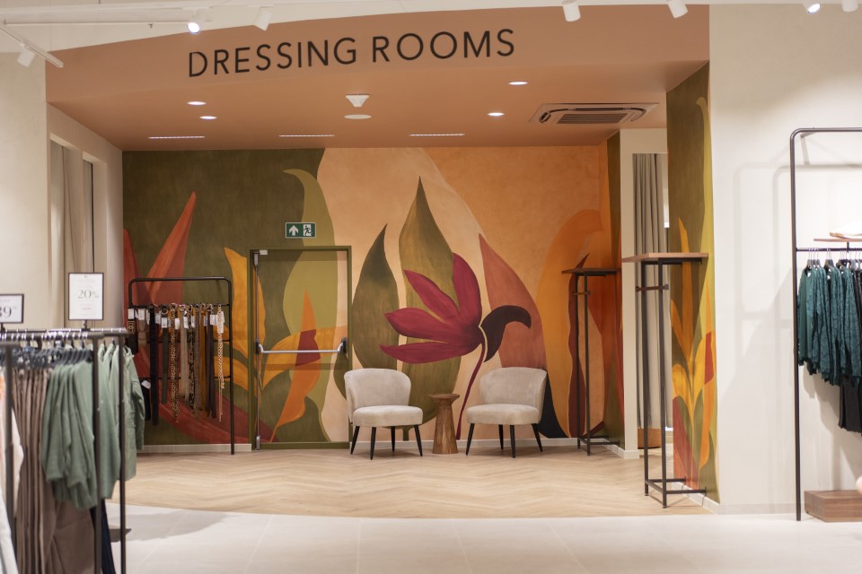 Le mobilier ouvert est flexible et modulable en fonction des changements de collections. De grands écrans véhiculent l’identité de la marque LolaLiza, tandis que des mannequins inspirent les acheteurs. À l’arrière du magasin, pas moins de quatorze cabines d’essayage spacieuses ont été conçues dans un souci de confort et de féminité : les cabines d’essayage sont en effet le lieu de vérité, où la conversion doit avoir lieu. Les vendeuses sont équipées de tablettes interactives qui leur permettent de commander immédiatement des articles qui ne sont pas disponibles en magasin.