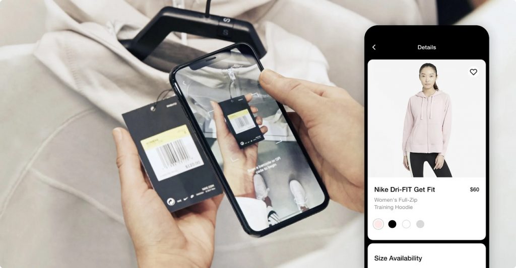 Une table avec écran interactif permet également aux clients du magasin de demander des critiques et des informations sur n’importe quelle paire de chaussures. Ceux qui ne veulent pas faire la queue pour entrer dans le magasin peuvent déjà réserver leur visite en ligne. L’application Nike permet également aux acheteurs de scanner les étiquettes des produits en magasin pour obtenir plus d’informations ou vérifier si leur taille est en stock.