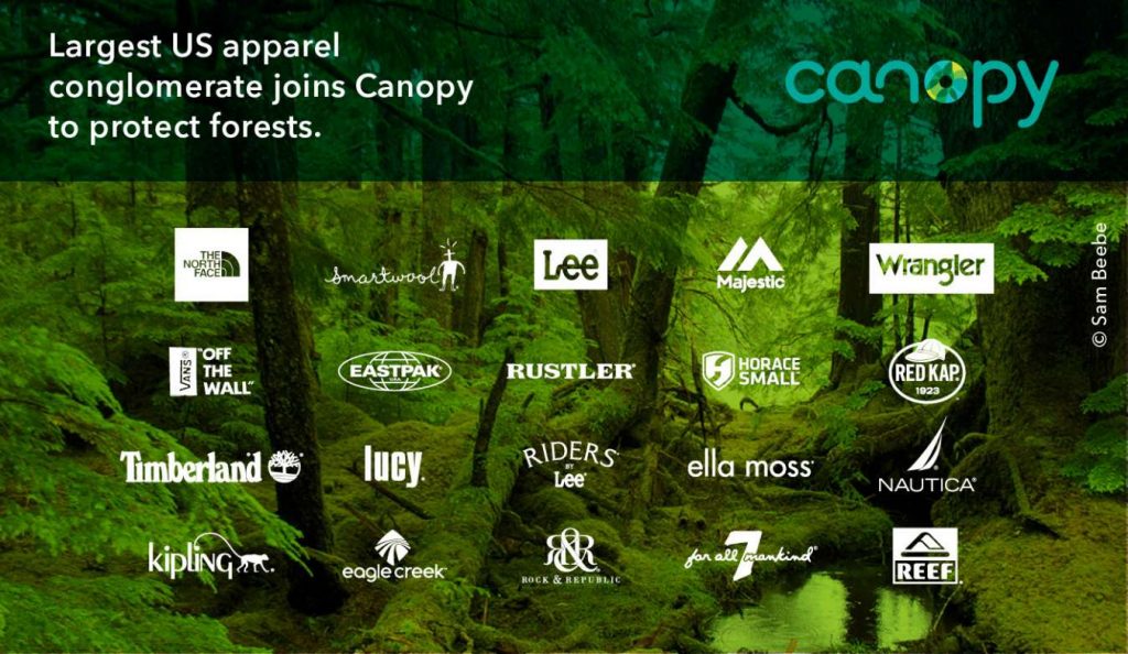 Le groupe VF Corporation, maison-mère de plusieurs grandes marques de vêtements américaines, comme The North Face, Lee, Wrangler et Timberland, s’est affilié à Canopy, une organisation engagée dans la protection des arbres et forêts.