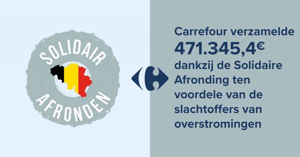Carrefour riep haar klanten de voorbije weken op om hun kassabon omhoog af te ronden. De actie ‘Solidaire Afronding’ werd gelanceerd op zaterdag 17 juli en liep tot het einde van de maand. Heel wat klanten gingen op het verzoek in om de slachtoffers van de natuurramp te financieel te steunen: in totaal werd 471.345,4 euro verzameld. Het volledige bedrag gaat naar het Rode Kruis.
