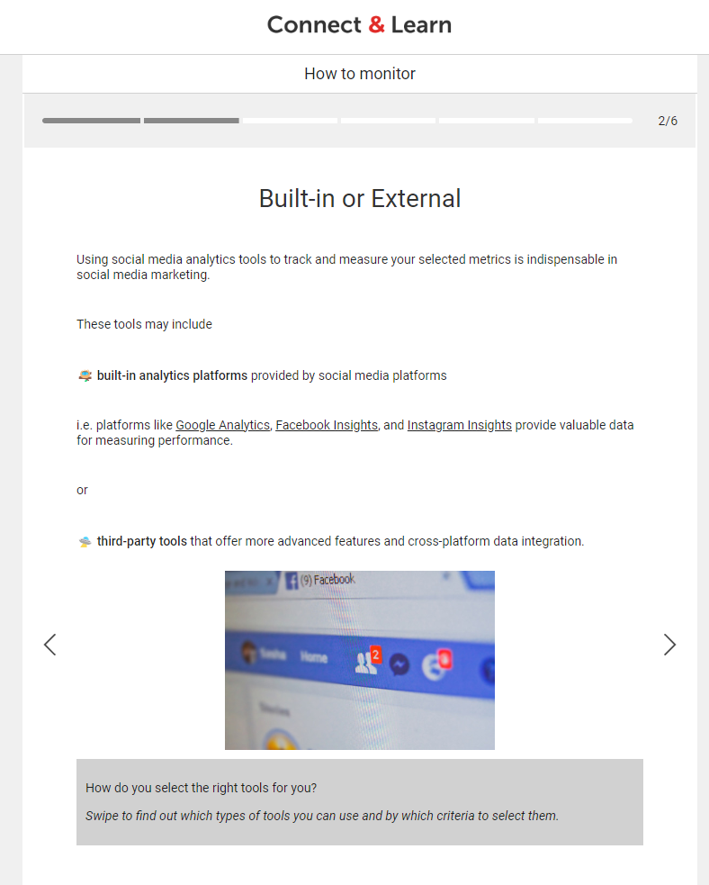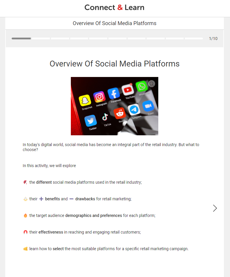 Met de hapklare en praktijkgerichte e-learningcursus ‘How to Ace Social Media Marketing’ op het nieuwe RetailDetail Connect&Learn-platform leer je de kennis en vaardigheden om het rendement van je inspanningen effectief te meten, te analyseren en te verbeteren. Je leert doelgerichte plannen te maken en acties uit te werken, op maat van wat je met je merk wil bereiken.
