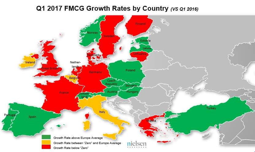 “De prijsinflatie is het belangrijke cijfer, de lage verkoopgroei en de terugval in volume zijn puur een gevolg van de timing van Pasen”, bevestigt vicepresident Olivier Deschamps. “De stijging van consumentenprijzen met 0,9% bleef stabiel in vergelijking met de 1% voor 2016. Dat duidt erop dat er maar weinig inflatiedruk is op de Europese FMCG-markt.”