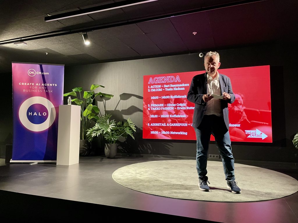 Naast discount is er in retail (en elders) nog zo’n buzzword dat op elk evenement terugkomt: artificiële intelligentie, en dan meer bepaald agentic AI. Niet alleen verandert zoekgedrag door AI, ook kunnen chatbots helpen met het retourproces, of bij cross-selling, weet Yasin Hadnan van CM.com. Uit een kleine rondvraag in de zaal blijken nog veel bedrijven niet op de hoogte, ondanks de hype, maar achterblijven is geen optie: “Start klein. Begin met het bouwen van een eenvoudige chatbot. Benut de data waarover je beschikt. Kennis zit vaak gespreid in de organisatie. Een AI-agent bouwen is als het aanwerven van een nieuwe collega.”