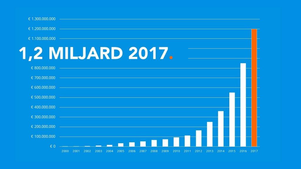 Met een omzetgroei van 38% presteerde Coolblue in 2017 wel minder sterk dan in 2016 en 2015, toen er telkens een groei met 50% kwam. Maar uitgedrukt in klinkende munt is een omzetstijging van 857 miljoen naar 1,2 miljard euro natuurlijk wel de grootste tot nu toe.