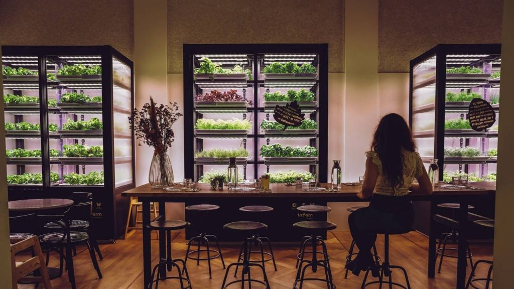 In samenwerking met Infarm heeft Beba een verticale mini-boerderij in haar restaurant. Tegen de wanden, in het vroegere museum Martin-Gropius-Bau, groeien de kroppen sla en spinazie voor je neus in kweekkassen. Ze gaan recht van de kas naar je bord, gegarandeerd koosjer.