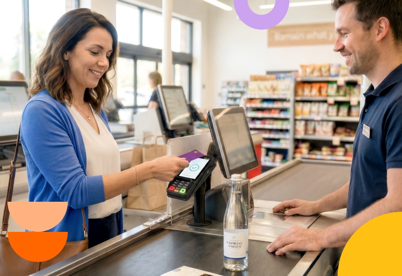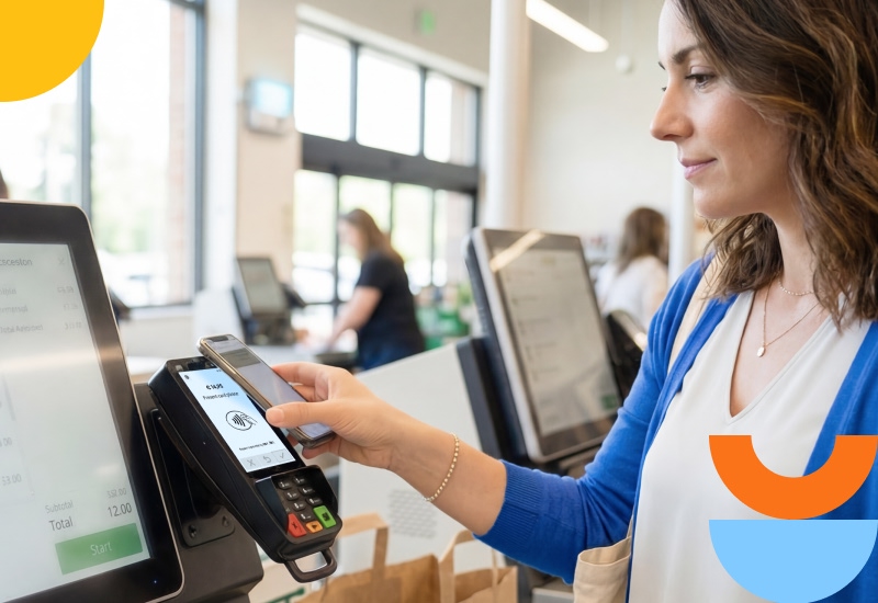 De kassamedewerker scant haar artikel en op dezelfde CCV-terminal kan Emma opnieuw kiezen hoe ze wil betalen: contactloos, met pin of via wallet. Een consistente ervaring overal in de winkel.