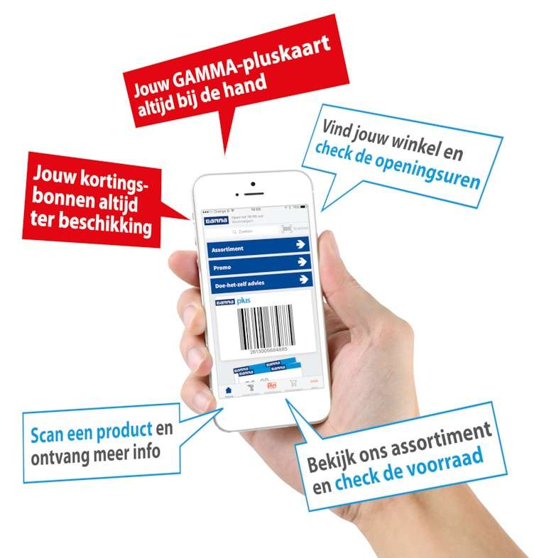 Doe-het-zelfketen Gamma heeft een nieuwe app gelanceerd, die naast de servicepunten en de webshop de digitale strategie van de keten moet ondersteunen. In de app kunnen gebruikers onder andere hun pluskaart opslaan.
