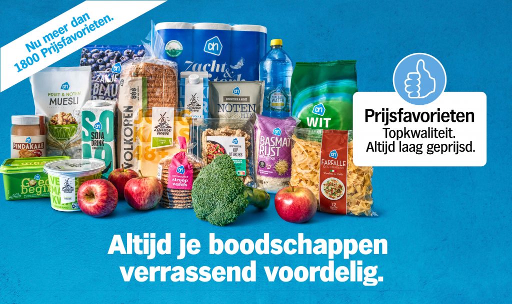 Albert Heijn voegt honderd “Prijsfavorieten” toe aan het bestaande assortiment. De huismerkproducten, die te herkennen zijn aan het blauwe duimpje, zijn nu met meer dan 1800.