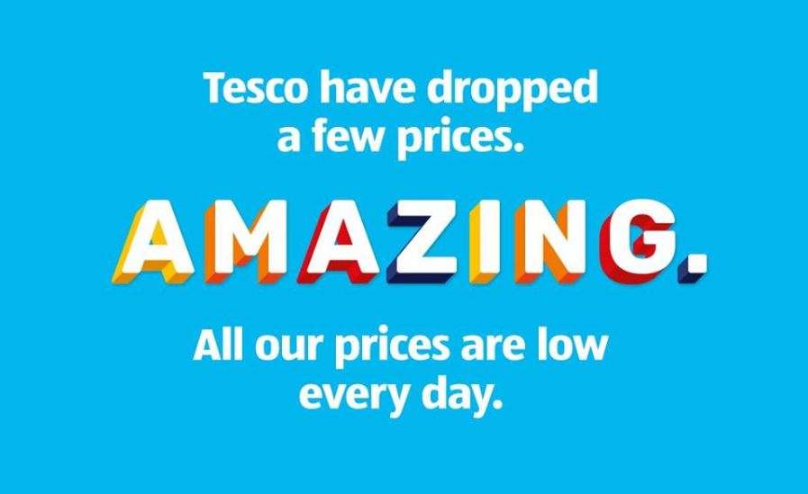 Aldi blijkt niet meteen verontrust is door het offensief van de marktleider. Integendeel, de retailer antwoordt met typisch Britse humor op de agressieve campagne. “De enige manier om Aldi-prijzen te krijgen, is bij Aldi te shoppen”, zo luidt het. In een tweet zegt de retailer: “We hadden een plan om de prijzen op die van Tesco af te stemmen, maar we wilden geen duizenden prijzen verhogen.” En een andere repliek luidt “Tesco heeft een paar prijzen laten zakken. Verbazend. Al onze prijzen zijn elke dag laag.”