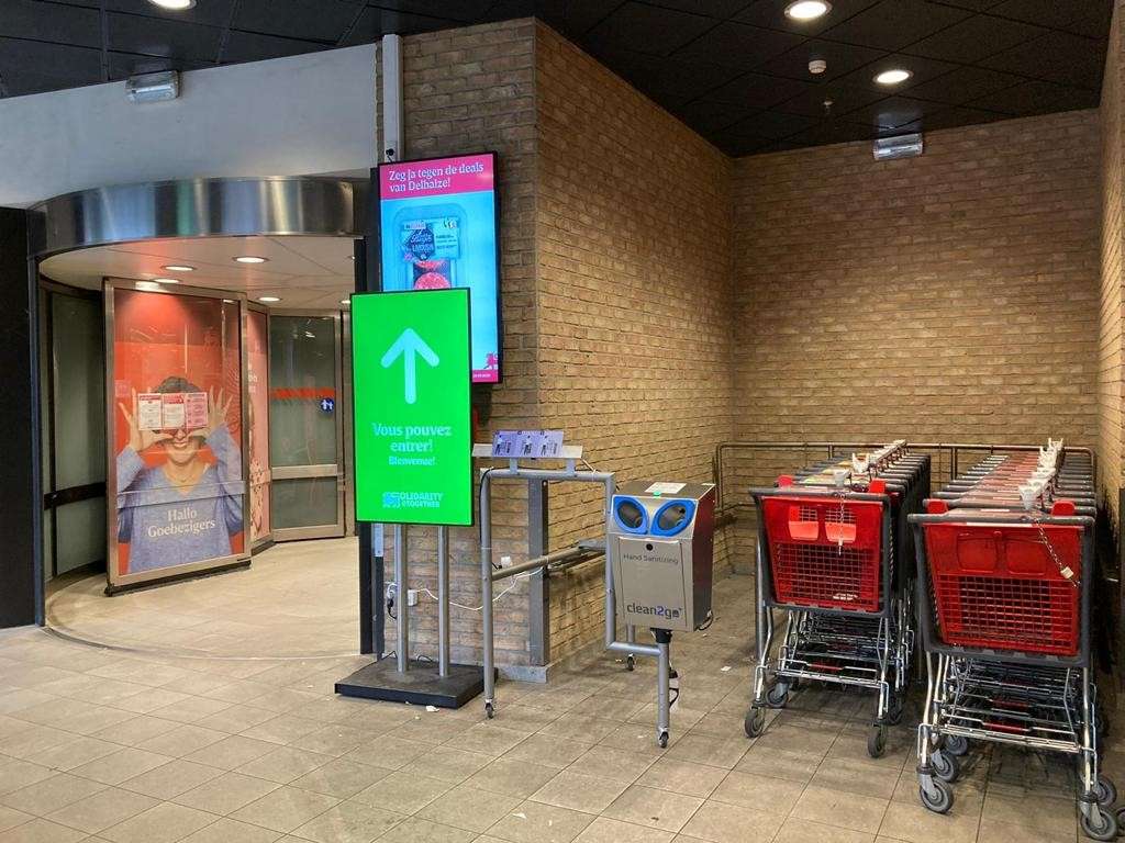 Vanaf vandaag rust Delhaize zijn supermarkten uit met een nieuw, automatisch ontsmettingssysteem voor de handen en winkelkarren. De investering biedt een structurele oplossing op lange termijn.