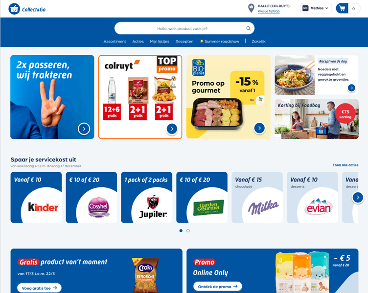“Collect&Go blijft investeren in meer gemak voor onze klanten. En daarom reserveren klanten nu makkelijk en snel hun boodschappen van beide merken samen. Bovendien kunnen ze nog steeds hun bestelling reserveren tot middernacht en de volgende dag al afhalen in een afhaalpunt of aan huis laten leveren”, zegt Tom De Prater, Directeur Collect&Go.