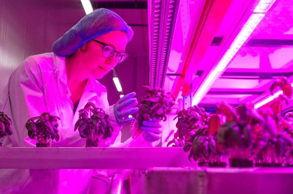 In een voormalig distributiecentrum van Collishop, vlakbij het hoofdkantoor in Halle, teelt Colruyt Group basilicumplantjes onder violet licht, in een vochtige omgeving van 30°C. Het gaat om spitstechnologie waarbij elk detail telt: de plantjes krijgen elke dag een andere cocktail van licht, lucht en water. Dat resulteert in sterkere planten die ook langer houdbaar zijn. De juiste mix tussen rood en blauw licht zorgt er bovendien voor dat de plantjes twee keer sneller groeien en meer aroma bevatten. Ze zijn ook langer houdbaar, wat leidt tot minder voedselverspilling.