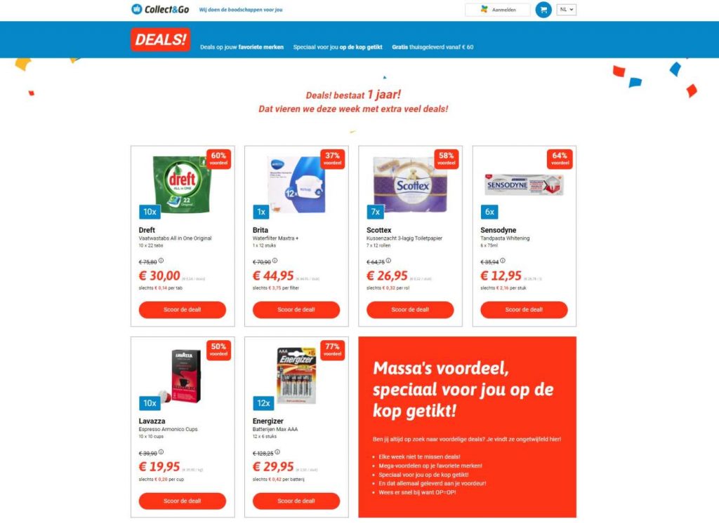 Precies een jaar geleden zag Deals! het daglicht, een nieuw koopjesplatform van Colruyt Group als antwoord op de toenemende concurrentie van buitenlandse onlinespelers. Het aandeel van near-food (denk aan tandpasta, wc-papier, schoonmaakmiddelen enzovoort) komt in de traditionele supermarkten namelijk onder druk te staan, precies door bulkaanbiedingen en ‘flash sales’ op buitenlandse sites. Denk maar aan de Amazon Prime Days, bulkdagen bij bol.com en meer van dat.