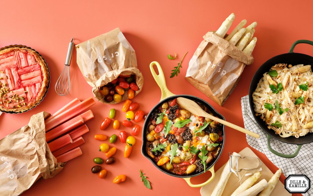 Crisp benadrukt dan weer het belang van regeneratieve landbouw: één van de pakketten zet rabarber van boer Folkert Botma centraal, die teelt met aandacht voor bodemherstel en biodiversiteit. De andere pakketten gebruiken verse Limburgse asperges voor een tagliatelle en een kilo diverse tomaten voor een piperade. Zoals het een aanbod seizoensgroenten betaamt, zal het aanbod regelmatig wisselen.