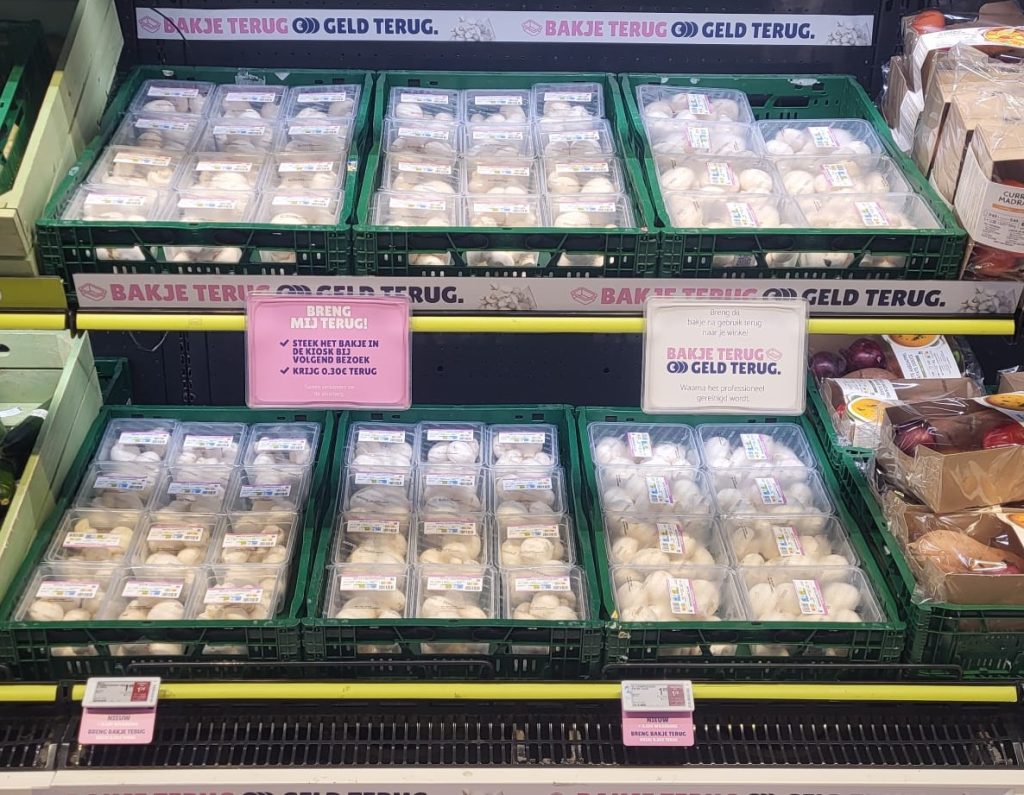 De Belgische supermarktketens testen, allemaal samen, statiegeld op herbruikbare verpakkingen. In Mechelen gaat een (tijdelijke) proef met champignonbakjes van start, maar de verwachtingen zijn hooggespannen.