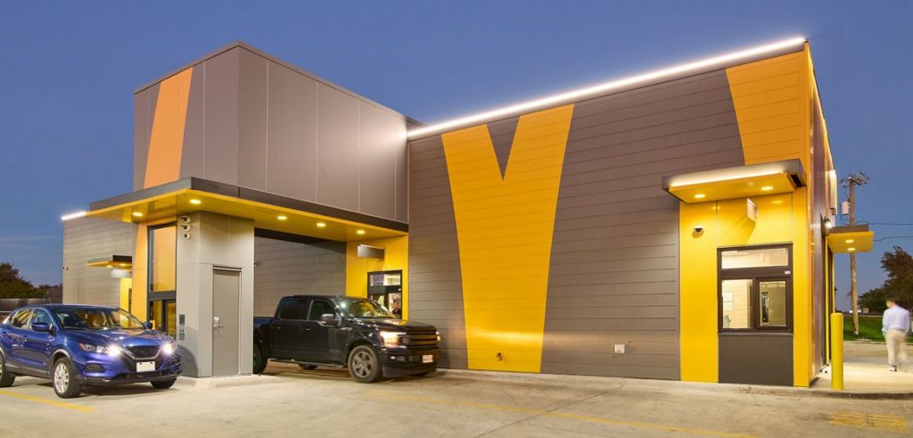 McDonald’s test in Fort Worth een veelbesproken nieuw concept. De vestiging is een pak kleiner dan gewoonlijk, maar dat is nog het minst opzienbarende aspect. Hoewel er een paar zitplaatsen zijn, richt het restaurant zich op klanten die hun fastfood voor thuis of ‘on the go’ afhalen – en dat vooral zo snel en contactloos mogelijk willen doen.