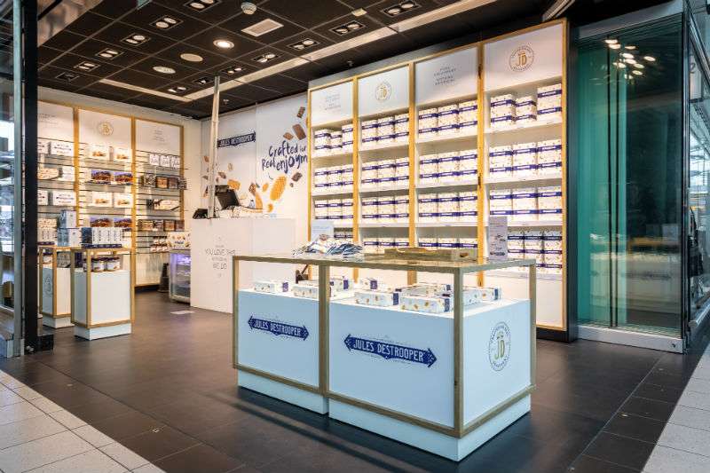 De Belgische koekjesfabrikant Jules Destrooper lanceert een reisgamma, ‘Global Travel Retail’, en opent daarvoor ook een tijdelijke winkel op Schiphol Airport. In de zomermaanden kunnen reizigers er speciale verpakkingen kopen.