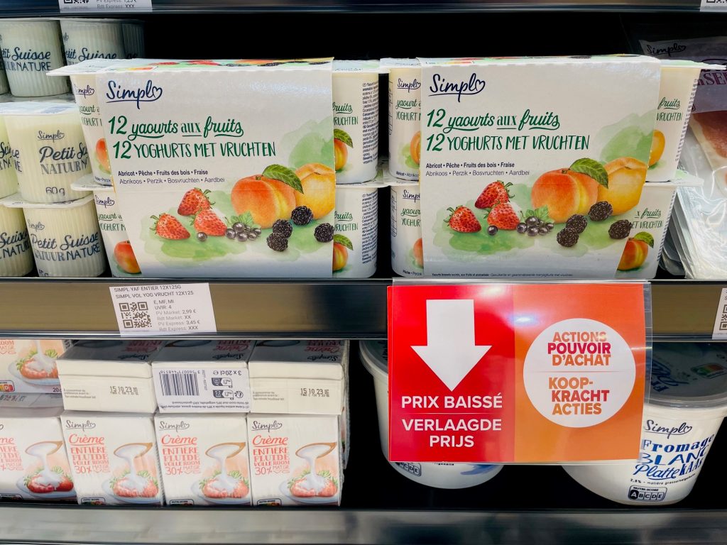 De afgeprijsde producten worden in de winkels aangeduid met opvallende signalisatie, zodat klanten de prijsverlagingen makkelijk herkennen. De komende weken staan nog prijsdalingen op de agenda, zegt Carrefour.