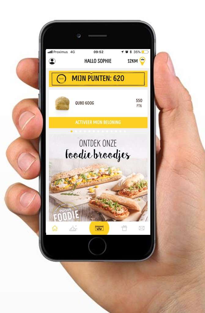 Met de Panos-app sparen klanten gemakkelijk punten: het volstaat na elke aankoop de digitale kaart te scannen aan de kassa. Elke gespendeerde euro is dan 10 punten waard. Wanneer een klant bijvoorbeeld 275 punten heeft gespaard, kan hij in de app een QR-code activeren voor een gratis croissant. “Die gratis Panos-producten stellen we aan hen voor op basis van hun persoonlijke voorkeuren”, zegt marketingdirecteur Ab Polspoel. “Zo zullen vegetariërs bijvoorbeeld geen gratis worstenbroodje als suggestie krijgen.”