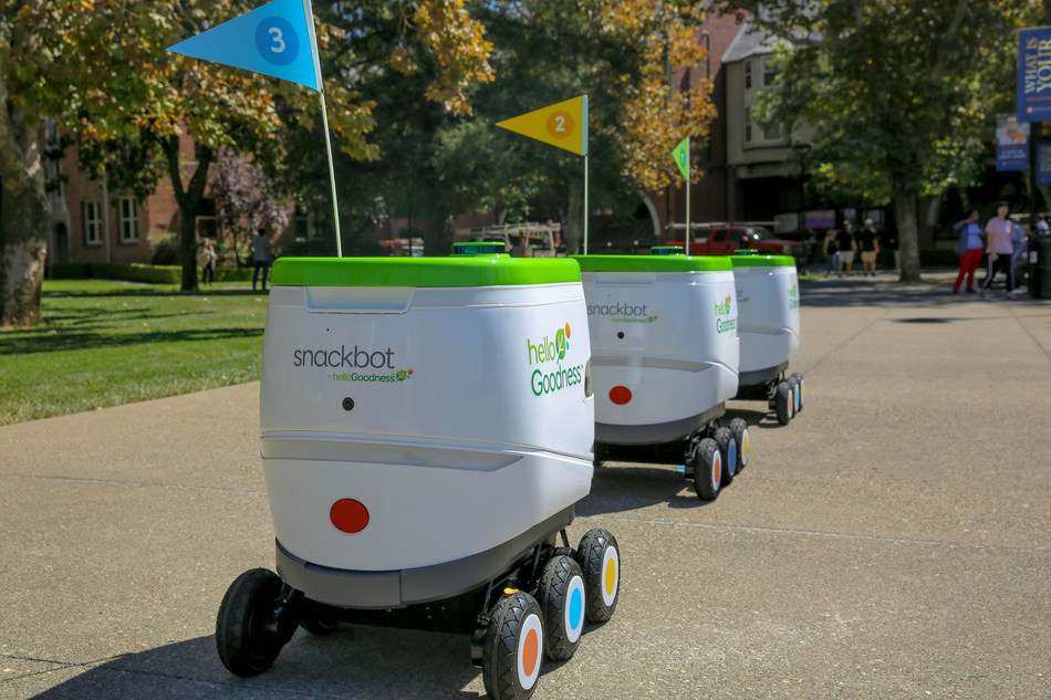 Week één van het nieuwe jaar en de goede voornemens vliegen al de deur uit aan de universiteit van Stockton in Californië. Daar rollen voortaan namelijk ‘snackbots’ rond, zelfrijdende robotjes die chips en Pepsi aan hongerige studenten leveren.